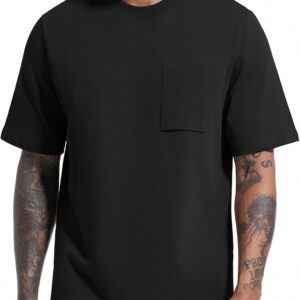VEIISAR Men’s Loose Fit Heavyweight Short-Sleeve Pocket Black T-Shirt