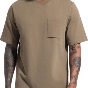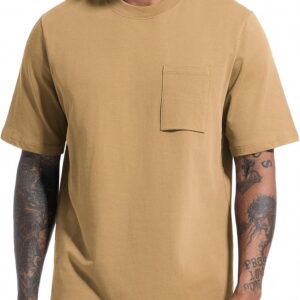 VEIISAR Men’s Loose Fit Heavyweight Short-Sleeve Pocket Khaki T-Shirt