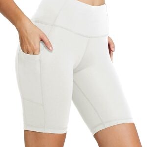 baleaf Women’s 8″ Biker Shorts High Waist Yoga Workout Gym Running Volleyball Spandex Shorts with Pockets(White-classic)