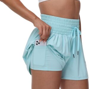 Blaosn Flowy Athletic Shorts for Women Gym Workout Running Short Pants High Waist Skort with Pocket Casual Summer Clothes(Blue)