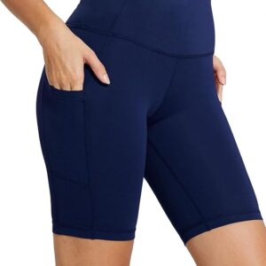 baleaf Women’s 8″ Biker Shorts High Waist Yoga Workout Gym Running Volleyball Spandex Shorts with Pockets(Navy Blue-classic)
