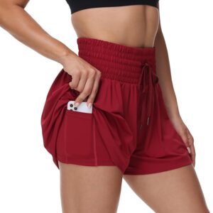 Blaosn Flowy Athletic Shorts for Women Gym Workout Running Short Pants High Waist Skort with Pocket Casual Summer Clothes( Burgundy)
