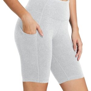 baleaf Women’s 8″ Biker Shorts High Waist Yoga Workout Gym Running Volleyball Spandex Shorts with Pockets(Light Grey-classic)