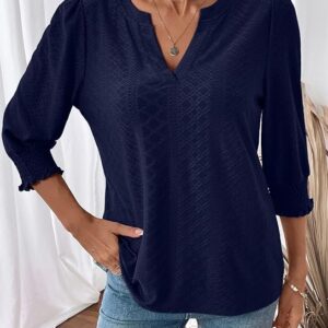 Dokotoo 3/4 Length Sleeve Womens Tops(Navy Blue)