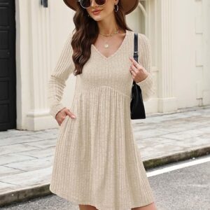 - FEATURES: v neck sweater dress, long sleeve, empire waist, babydoll design, above knee length, dressy casual, flowy fall fashion tunic dress, loose and flattering dresses to hide belly fat well.