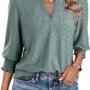 - 3/4 sleeve design: Comfy 3/4 sleeve, comfrt v neck, hollow out design, lightweight shirt,loose fit and solid color all-match, the tops offers versatile look.