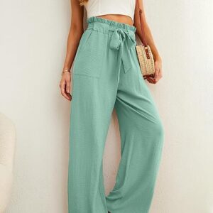 IWOLLENCE Women’s Wide Leg Pants with Pockets High Waist(06 Mint Green)