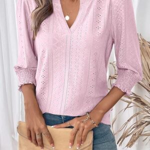 Dokotoo 3/4 Length Sleeve Womens Tops(Light Pink)