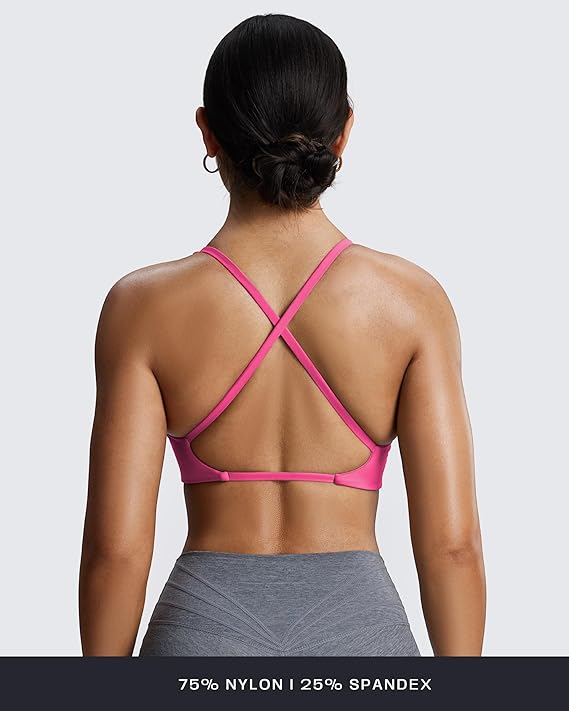 Aoxjox Women’s Workout Sports Bras Fitness Sienna Low Impact Bra Yoga Crop Tank(Azalea Pink)