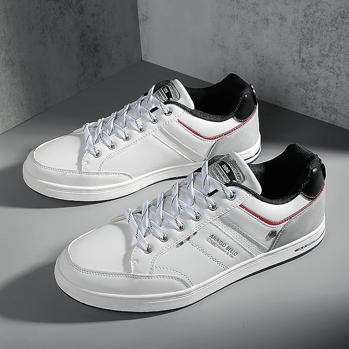 - [Breathable]: The upper of the men’s fashion sneakers are used PU leather and Synthetic material, and the weaving techniques production, which is much more fashionable and breathable. Your feet will never feel uncomfortable when wearing these men’s casual sneakers.