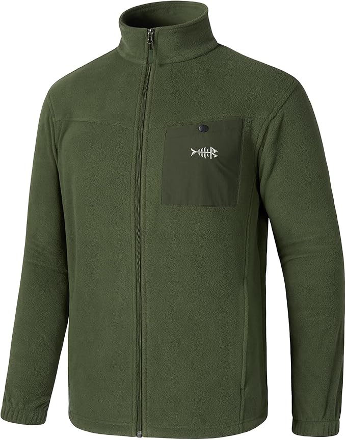 BASSDASH AllDay Men’s Full Zip Fleece Army Green Jacket