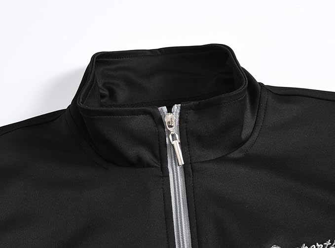 Front Zipper & Stand Collar Jackets: Rib knit cuffs and side zippered hand pockets. Embroidery on the chest and back reflective coating.
