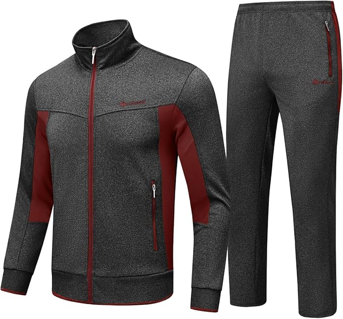 BASUDAM Men’s Dark Grey Red Tracksuit