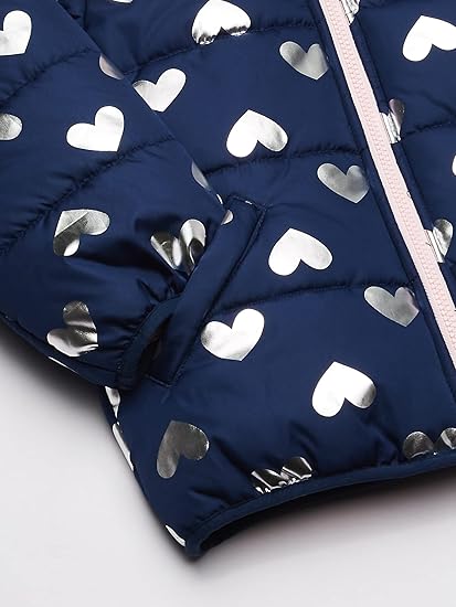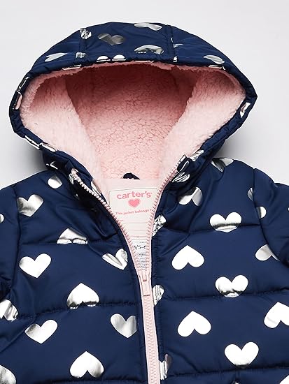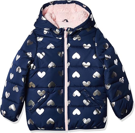 Carter’s Girls’ Fleece Lined Puffer Jacket Coat (White Hearts)