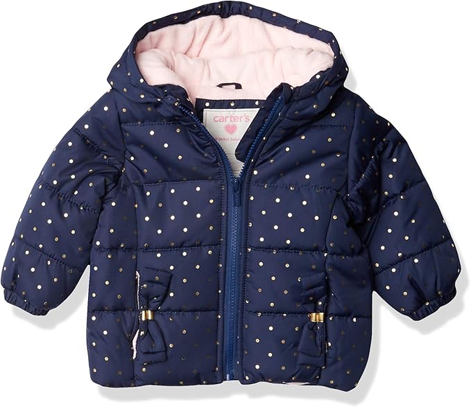 Carter’s Girls’ Fleece Lined Puffer Jacket Coat (White Dots)