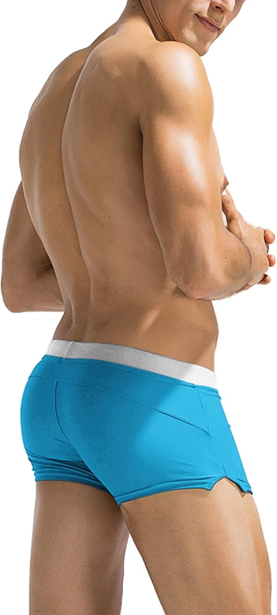 - Unique Design — Designed with safe and useful zipper pocket to carry keys, money or other small things, side incision of the leg vents to ensure the most freedom of your movement, this solid swimming short helps you show your body shape and create stylish looking.