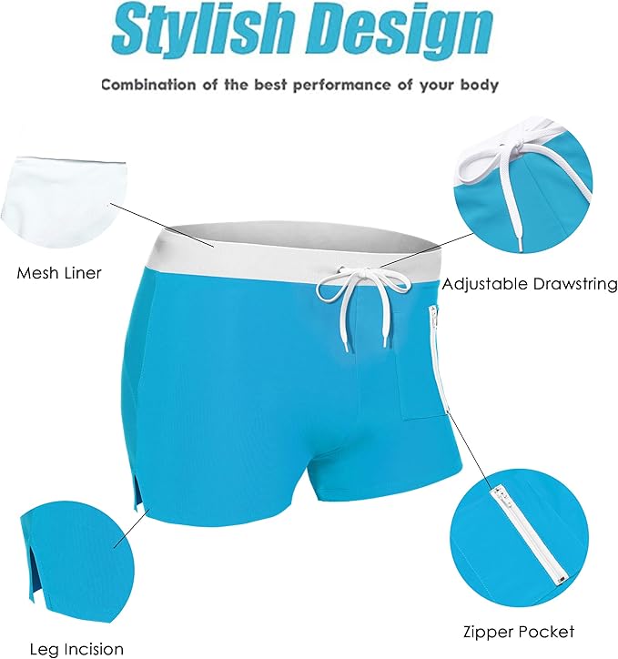 - Elastic Waist — This slim swimming bathing suit features with elastic waist with adjustable drawstring, providing you the maximum comfort at waist and convenience in swimming.