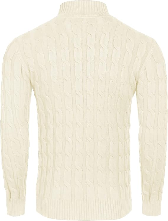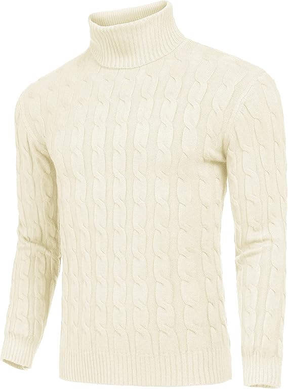 Premium long sleeve pullover sweaters design in slim fit, featuring with turtleneck, twist patterned, ribbed cuffs and hem.