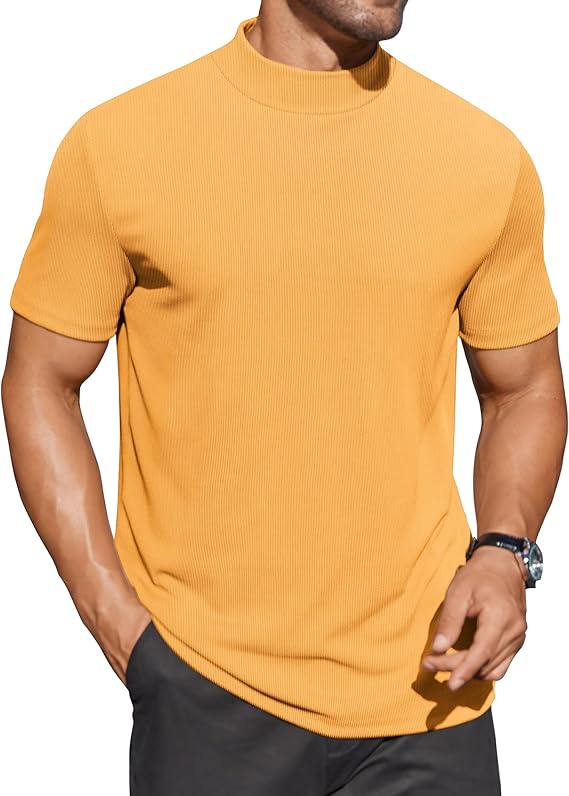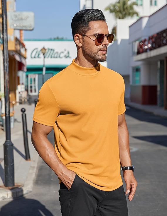【STYLISH DESIGN】Men’s mock neck shirt features with half turtleneck design, short sleeve. Solid color basic casual t-shirt is fashionable and versatile, and is a great addition to any wardrobe.