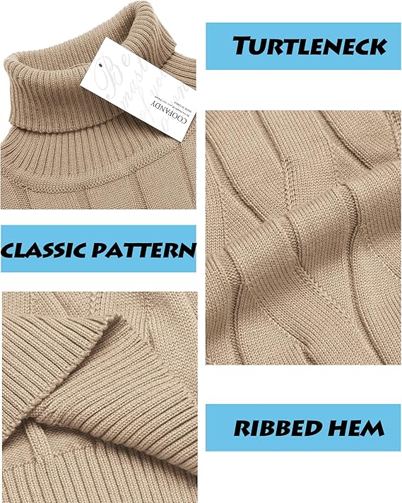 Garment Care: Machine washable, 【NOTE】: This men’s turtleneck sweater is in standard US size, Please check the size chart in the product description before ordering to ensure the best fit.