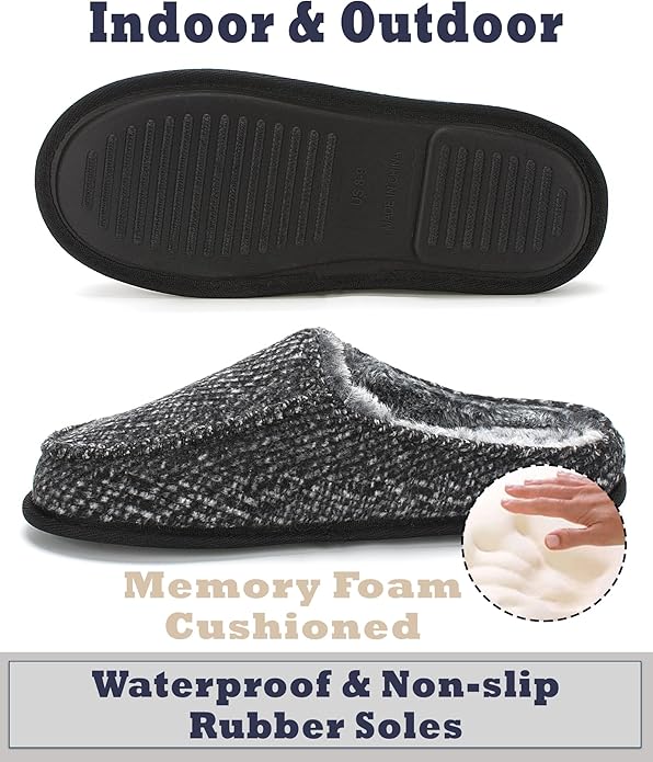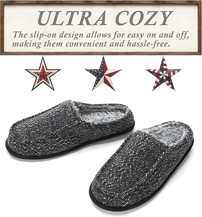 - Supreme Comfort & Support – Experience the ultimate in comfort with Cozylook Men’s Slip-on Slippers, featuring plush two-tone gray/white soft plush lining and premium high-quality uppers. Memory foam cushioning molds to your feet for personalized support, while non-slip rubber soles ensure safe footing both indoors and outdoors