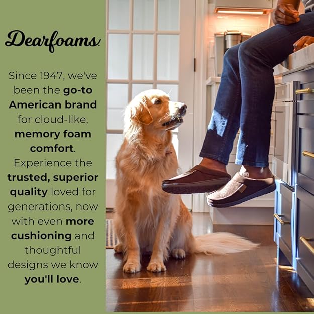 - DEARFOAMS TRUE COMFORT: Trusted since 1947, America’s #1 Slipper Brand sets the standard for cozy comfort. Designed with premium memory foam, plush linings, and durable soles, Dearfoams delivers all-day softness and timeless quality you can count on.
