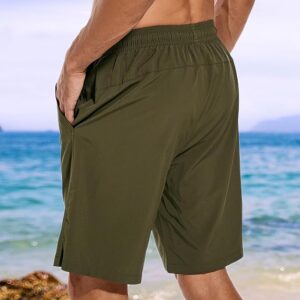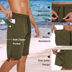 - [Multi-Pockets]: Classic Solid Color Board Shorts with 2 Side Pockets, 1 Zipper Pocket and 1 Lined Pocket, Convenient Storage Essentials, Give Fully Sense of Security and Keep Hands Free