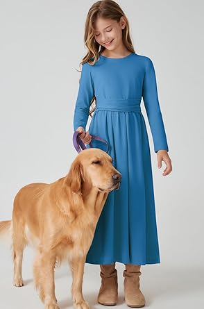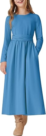 • 【Flowy Elegant Style】Featuring soft flowy maxi silhouette, crossed belt, and inseam pockets, this girls dress with long/ruffle sleeve is as comfortable as it is elegant. Available in black, cream, pink, blue, and more color, it would be one of most favorite closet items for girls 7-14 years!