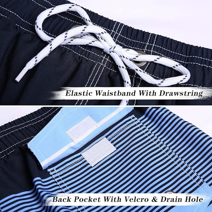 ELETOP Men’s Stripe Blue Swim Trunks
