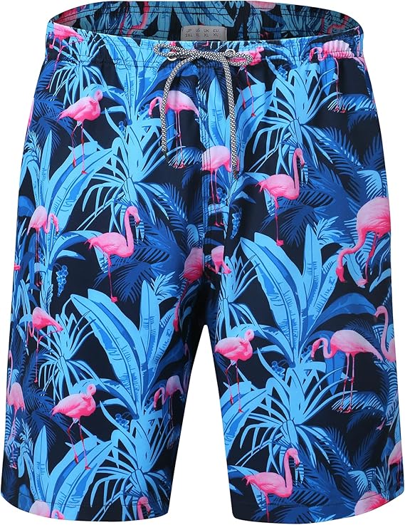 ELETOP Men’s Stripe Flamingo Swim Trunks