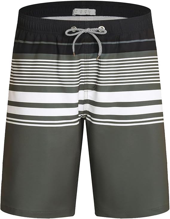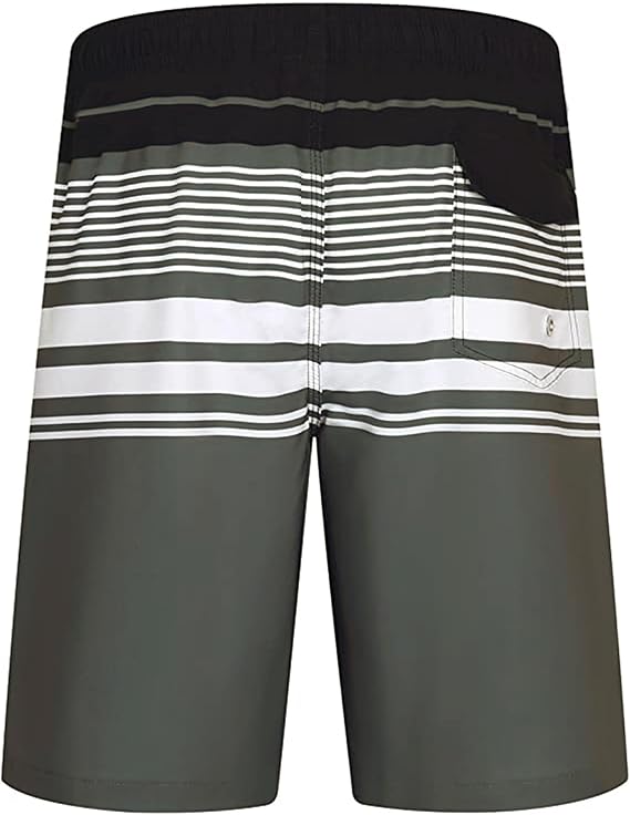 ELETOP Men’s Stripe Grey Blue Swim Trunks