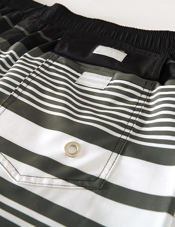 - Mesh Liner and Pockets — The beach shorts with mesh liner have 2 slanted hand pockets and 1 back pocket with velcro and drain hole, effective storage wallet, key or other small items.