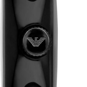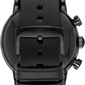 - An oversized black dial with stainless steel accents and a black genuine leather strap give this Emporio Armani watch a cool, metropolitan look.