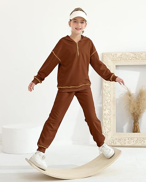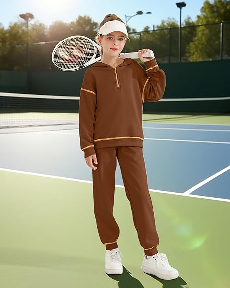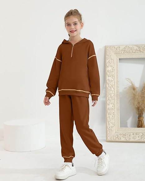 - Key Features: YOURUIKEY girls sweatshirt boast a zipper-up design for easy on and off. The tween hoodie includes a central pocket for storing small essentials, while the elastic-waist girls sweatpants adapt to different body types for all-day comfort. With tapered trouser legs, this girls sweatsuit embodies the trendy style that tween girls crave.