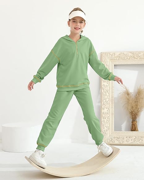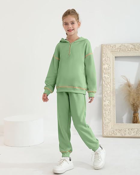 - Key Features: YOURUIKEY girls sweatshirt boast a zipper-up design for easy on and off. The tween hoodie includes a central pocket for storing small essentials, while the elastic-waist girls sweatpants adapt to different body types for all-day comfort. With tapered trouser legs, this girls sweatsuit embodies the trendy style that tween girls crave.