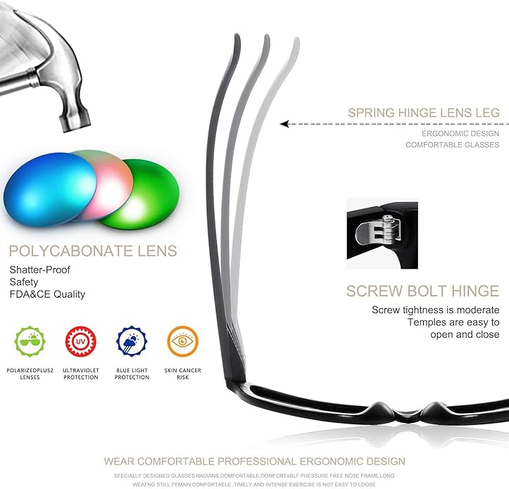 - Shatter-Resistant Lenses for Long-Lasting Durability: Built with shatter-resistant lenses, these squared-off frames offers added durability and peace of mind, ensuring your sunglasses remain intact and reliable in all environments.
