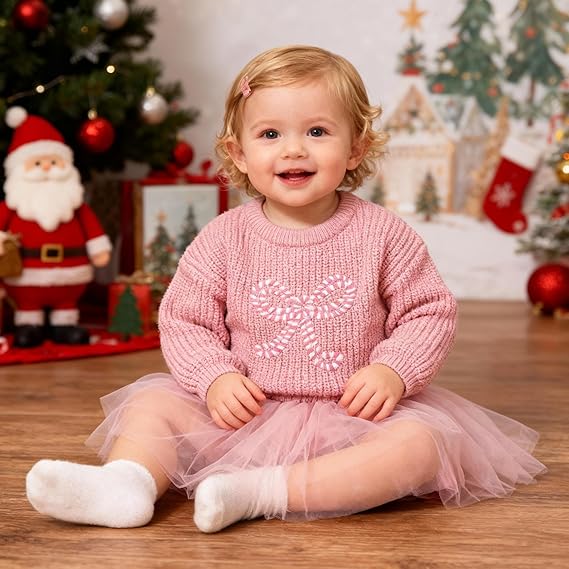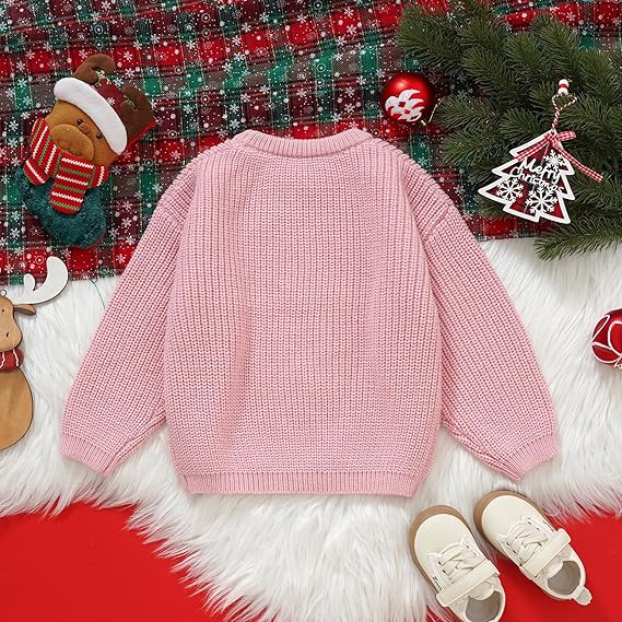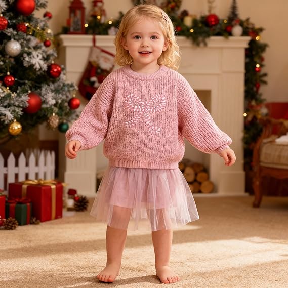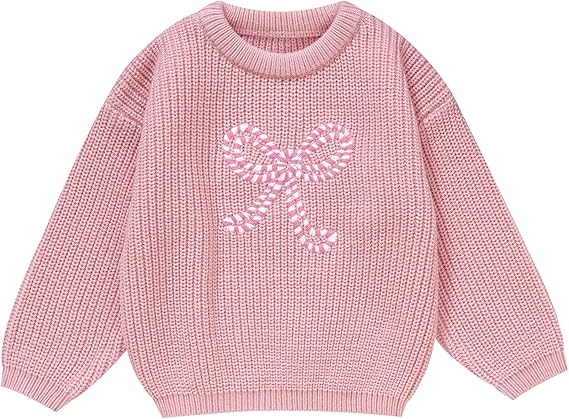 Girl Bow Sweater Cute Knitted Pullover Fall Winter Clothes(Big Bow-pink)