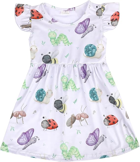 Girl Casual Dress Baseball Print Ruffle Bottom Casual Dress Summer Clothes (Caterpillar)