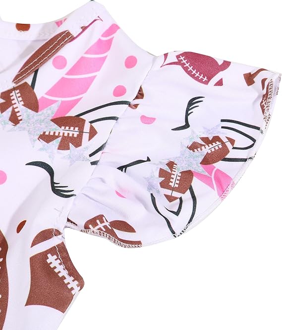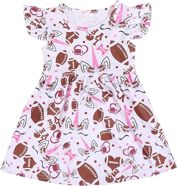 Girl Casual Dress Baseball Print Ruffle Bottom Casual Dress Summer Clothes (rugby)