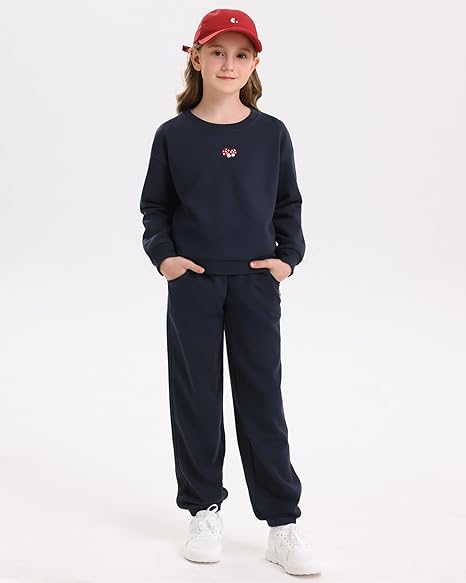 Girls Athletic Sweatsuit 3 Pieces Sweatshirts and Pant with Pockets Long Sleeve Outfits Set(Navy)