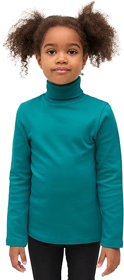 Girls’ Basic Long Sleeve Turtleneck Cotton T-Shirt(pearl blue)