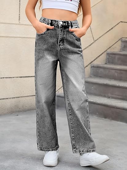 Be the first to review “Girl’s Bow Print Back Zipper Fly Elastic High Waist Denim Pants Basic Wide Leg Jeans (pant 5)”