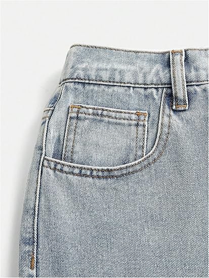 Girl’s Bowknot Print Washed Jean Elastic Waist Denim Pants Straight Leg Trousers with Pockets (pant 5)