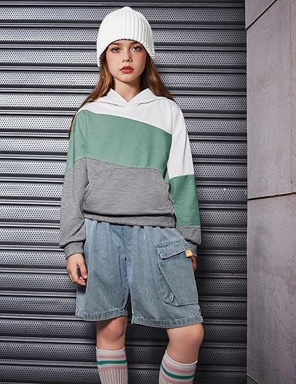 • Easy Match: Girls color block hoodies easily pair with various clothes. It looks great with jeans, sweatpants, jogging pants, boots, and sneakers, creating a chic land fashion look.