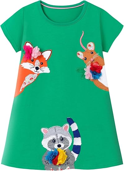 Toddler Girls Cotton Short Sleeve Dresses are designed with cute tiger,elephant,zebra,ladybug, mermaid,rainbow,etc.adorable and fashionable.Your baby girl will get a lot of compliments when her in this dress