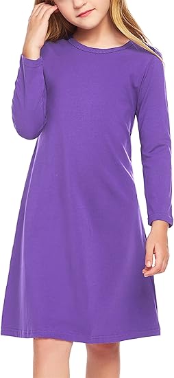 Be the first to review “Girls Dress Kids Long Sleeve Solid Color Casual T-Shirt Dress(Purple)”