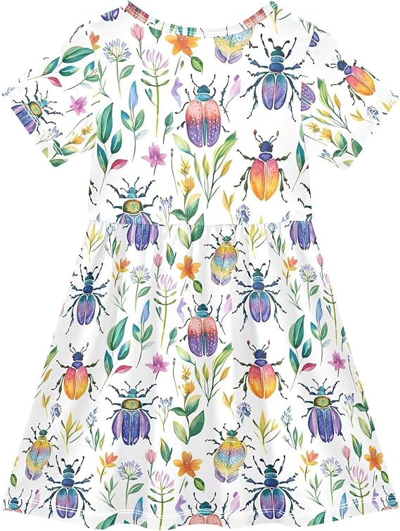 Girls Dresses Sundress Kids Short Sleeve Casual A Line Dresses(Multicolour 02)