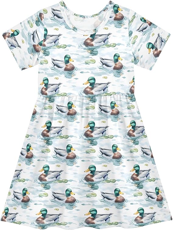 Girls Dresses Sundress Kids Short Sleeve Casual A Line Dresses(Multicolour 04)
