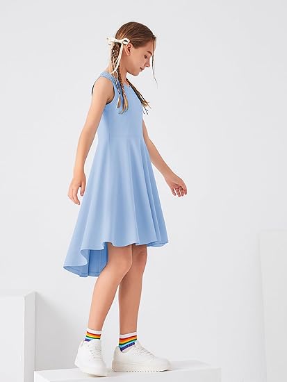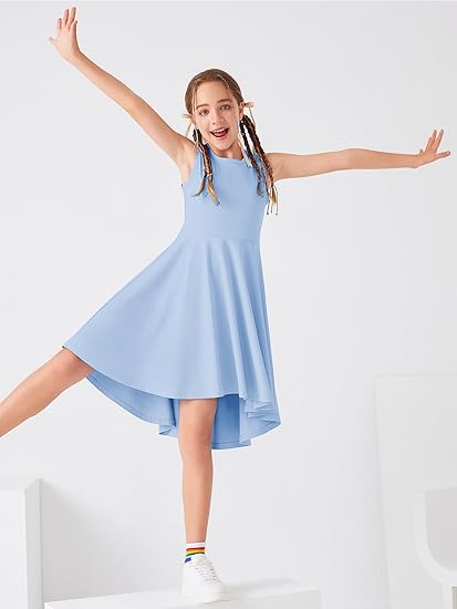 Girls High Low Dress Crewneck Casual Party Athletic Dress