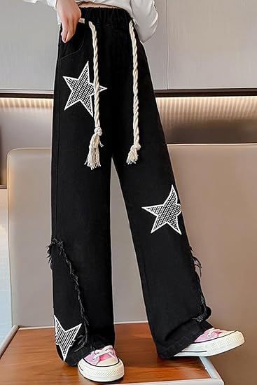 Girls Jeans Elastic Waist Wide Leg Pants Kids Jeans (Pant 3)